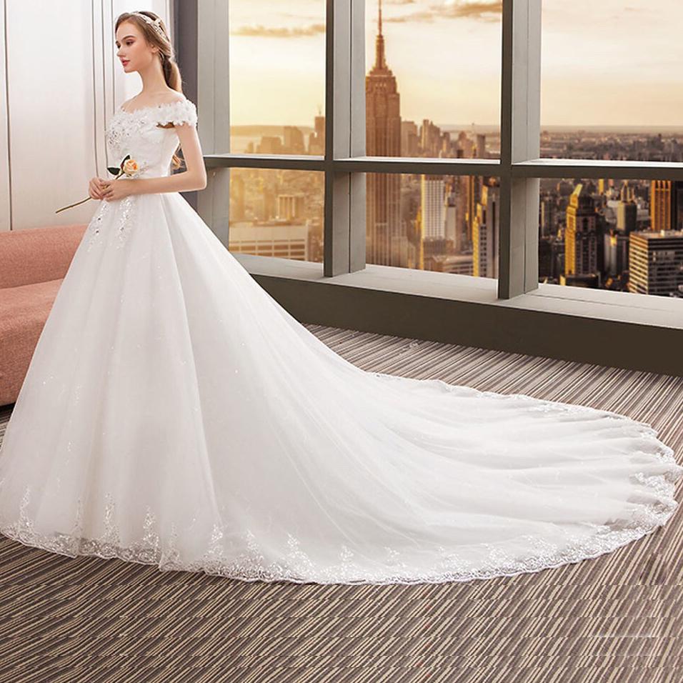 Putih Lace Baju Nikah Simple / Fishtail Wedding Dress Bride Lace Up Wedding Dresses Embroidery New Slimming Word Shoulder Dress Simple Wedding Dresses Aliexpress